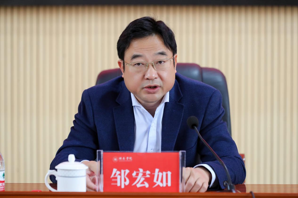 邹宏如指出,学校全体党员干部要深刻领悟“两个确立”的决定性意义,坚决把思想和行动统一到党中央决策部署上来,深刻领会主题教育的重大意义,把握总体要求,聚焦突出问题,明确重点措施,把本次主题教育付之于行动、见之于成效,努力为推动学校高质量发展提供坚强有力的政治保证、思想保证和组织保证。他就学校如何开展好主题教育提出四点要求:一要深刻领会本次主题教育的重大意义,切实增强开展好主题教育的思想自觉、政治自觉和行动自觉。要深刻认识开展主题教育对深刻领悟“两个确立”、坚决做到“两个维护”的重大意义,对把党的二十大作出的重大决策部署付诸于行动的重大意义,对推进新时代党的建设新的伟大工程、强化管党治党的重大意义。二要对标对表目标任务,从严从实落实中央和省委的部署要求。要全面把握主题教育的总体要求,深刻领会主题教育的根本任务,牢牢把握主题教育的具体目标。三要全面聚焦突出问题,将坚实的举措贯穿到主题教育全过程。要提升理论学习的广度和深度,提高调查研究的热度和效度,夯实推动发展的力度和温度,注重检视整改的精度和准度,探索建章立制的韧度和准度。四要有序推进安排部署,以主题教育实际成效助推学校高质量发展。要强化组织领导,层层压实责任;精心谋划部署,统筹协调推进;加强督导检查,狠抓工作落实;广泛发动宣传,营造浓厚氛围;聚焦中心工作,确保取得实效。