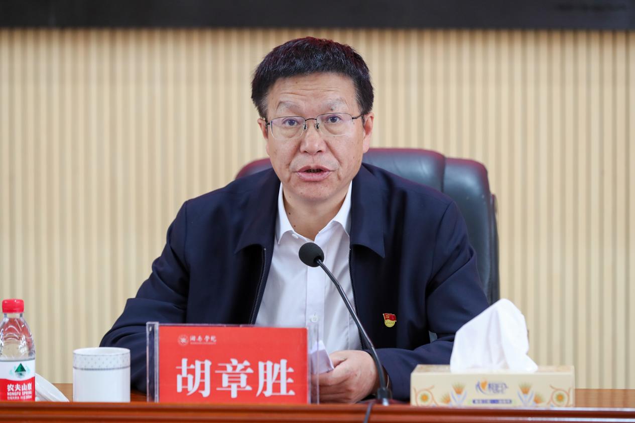 胡章胜对我校主题教育前期筹备工作情况表示充分肯定:学校党委迅速行动、结合实际认真做好主题教育准备工作,第一时间成立主题教育领导小组和办公室,工作开展迅速,资料准备详实。他指出,习近平总书记在主题教育工作会议上的重要讲话为全党开展主题教育指明了正确方向,提出了明确要求,为全党开展主题教育作了全面动员、全面部署。他就落实主题教育各项工作任务提出五点要求:一要坚持提高政治站位抓落实,要教育引导广大党员、教职员工把思想和行动统一到习近平总书记重要讲话精神上来,坚定捍卫“两个确立”、坚决做到“两个维护”。二要坚持紧扣总要求抓落实,要把主题教育的总要求与贯彻落实党的二十大作出的战略部署,贯彻落实习近平总书记对湖南的重要指示批示精神结合起来,锚定高质量发展这个首要任务,紧密结合单位职能职责,真抓实干、务求实效,推动主题教育融入中心、服务大局,为全面建设社会主义现代化新湖南提供智力支持和坚强的人才保障。三要坚持聚焦根本任务抓落实,要把深入学习贯彻习近平新时代中国特色社会主义思想这一根本任务作为主线,坚持学思用贯通、知信行统一,推动广大党员领导干部、教师党员、学生党员在学深悟透、融会贯通上下功夫,在入脑入心、见行见效上出成果。四要围绕具体目标抓落实,要坚持目标导向和问题导向相结合,以具体目标为牵引,以解决问题为抓手,在制定措施、推动落实的过程中自觉对标对表、及时校准偏差,确保主题教育不变形、不走样。五要贯通重点措施抓落实,要把理论学习、调查研究、推动发展、检视整改、建章立制贯通起来,有机融合、一体推进,把每项工作做扎实、做到位。