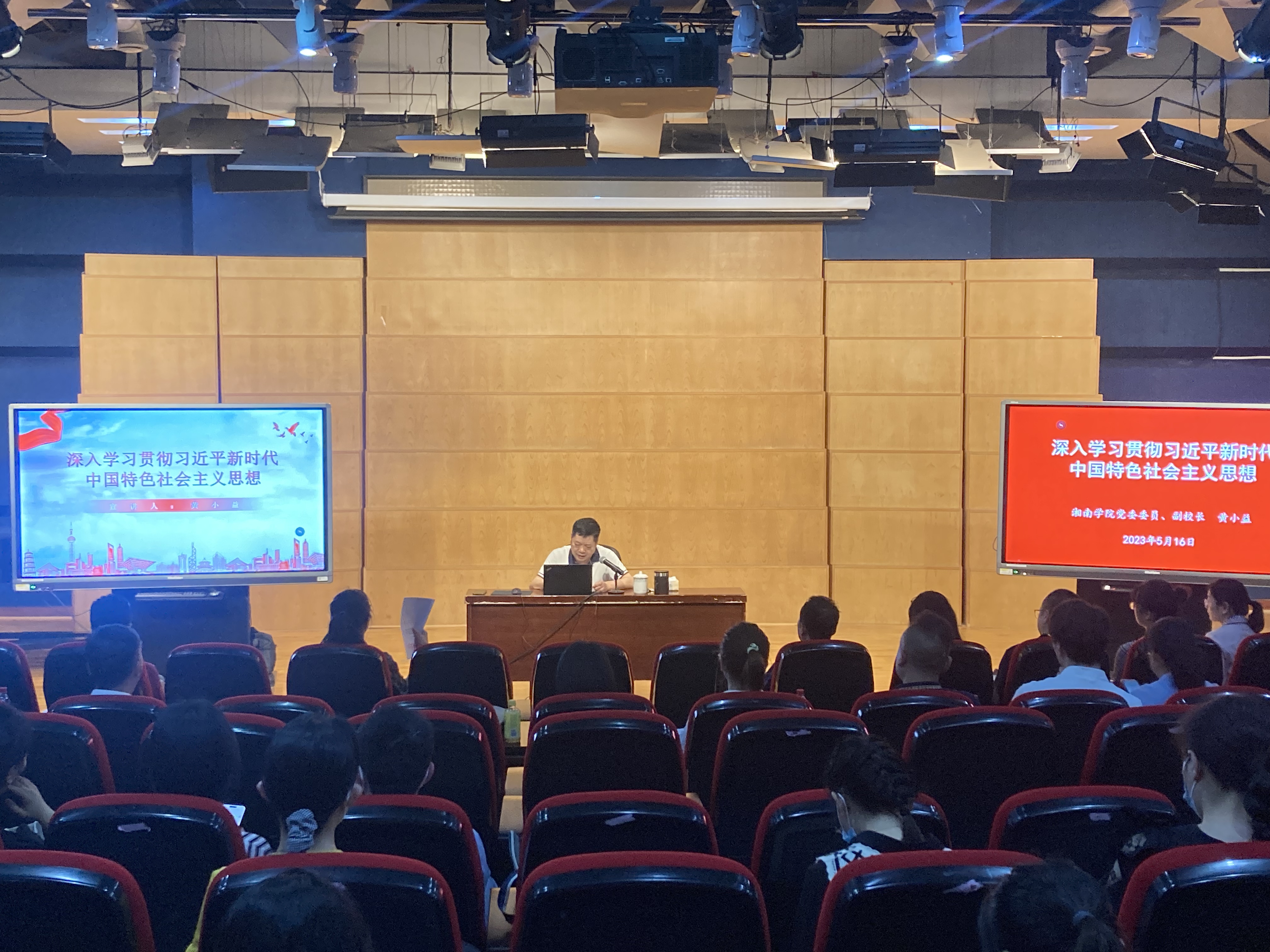 黄小益以习近平新时代中国特色社会主义思想为主题,牢牢把握“学思想、强党性、重实践、建新功”的总要求,从溯理论之源、新时代、中国特色、在实际工作中深入学习贯彻习近平新时代中国特色社会主义思想四个方面进行了宣讲。他指出,全体师生必须深入学习贯彻习近平新时代中国特色社会主义思想,全面系统掌握这一思想的基本观点、科学体系,把握好这一思想的世界观、方法论,坚持好、运用好贯穿其中的立场观点方法,不断增进对党的创新理论的政治认同、思想认同、理论认同、情感认同,自觉用习近平新时代中国特色社会主义思想武装头脑、指导实践、推动工作。