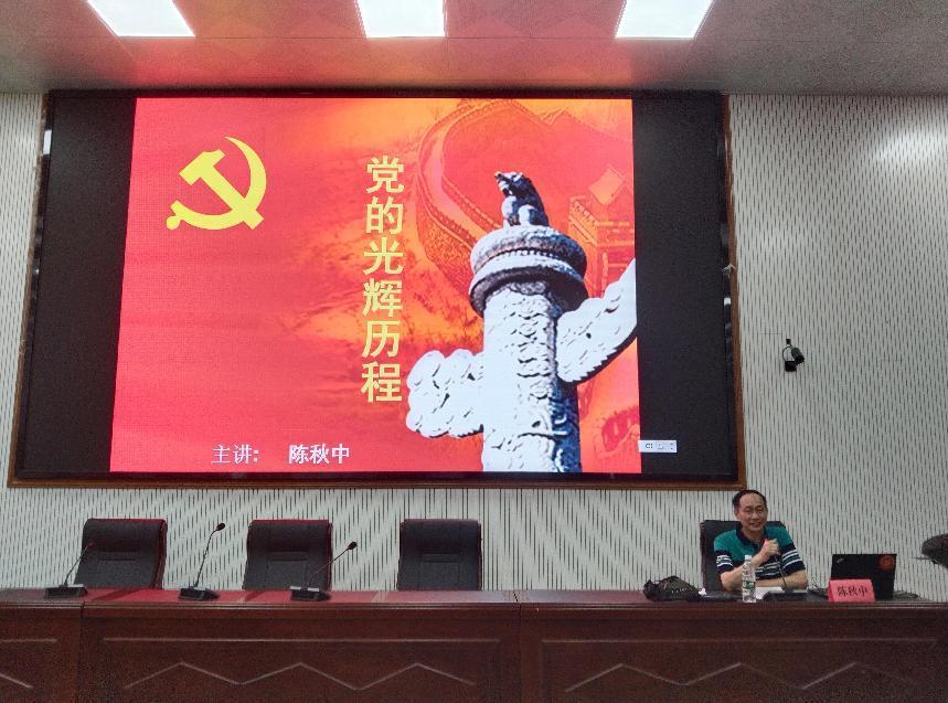 图为原校工会常务副主席陈秋中授课