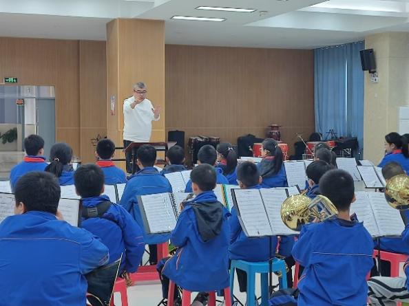 11月21日,教师们前往西安市雁塔路小学,对其管乐团进行现场指导。通过集体排练指导以及示范演奏等多种形式,针对孩子们的演奏技巧、音乐表现力以及团队协作等方面进行辅导。同时,双方教师进行深入交流,就如何更好地开展音乐教育、提升学生的音乐素养等问题进行探讨。