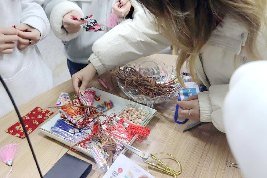 文学与新闻学院组织女职工制作非遗窗花剪纸、非遗竹编画、平安符挂饰