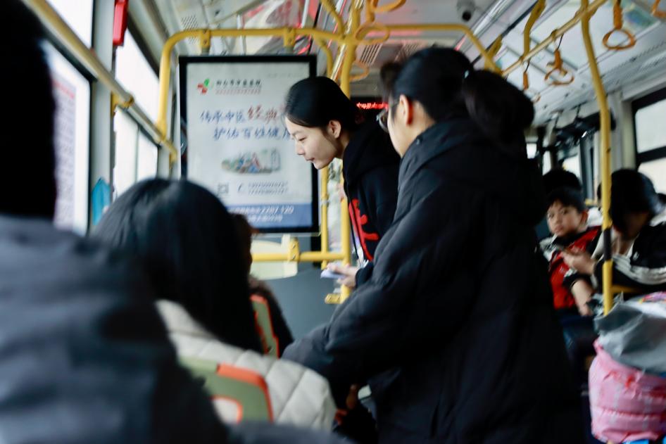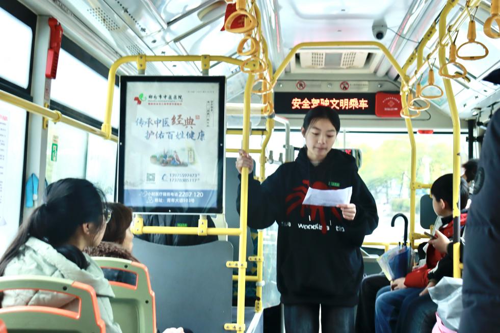 “今天坐公交车碰上了大学生志愿者宣讲两会政策,听完他们讲的关于民生的这些内容,我对国家的发展更有信心了,相信以后日子会越来越好!”公交车乘客陈女士说道。