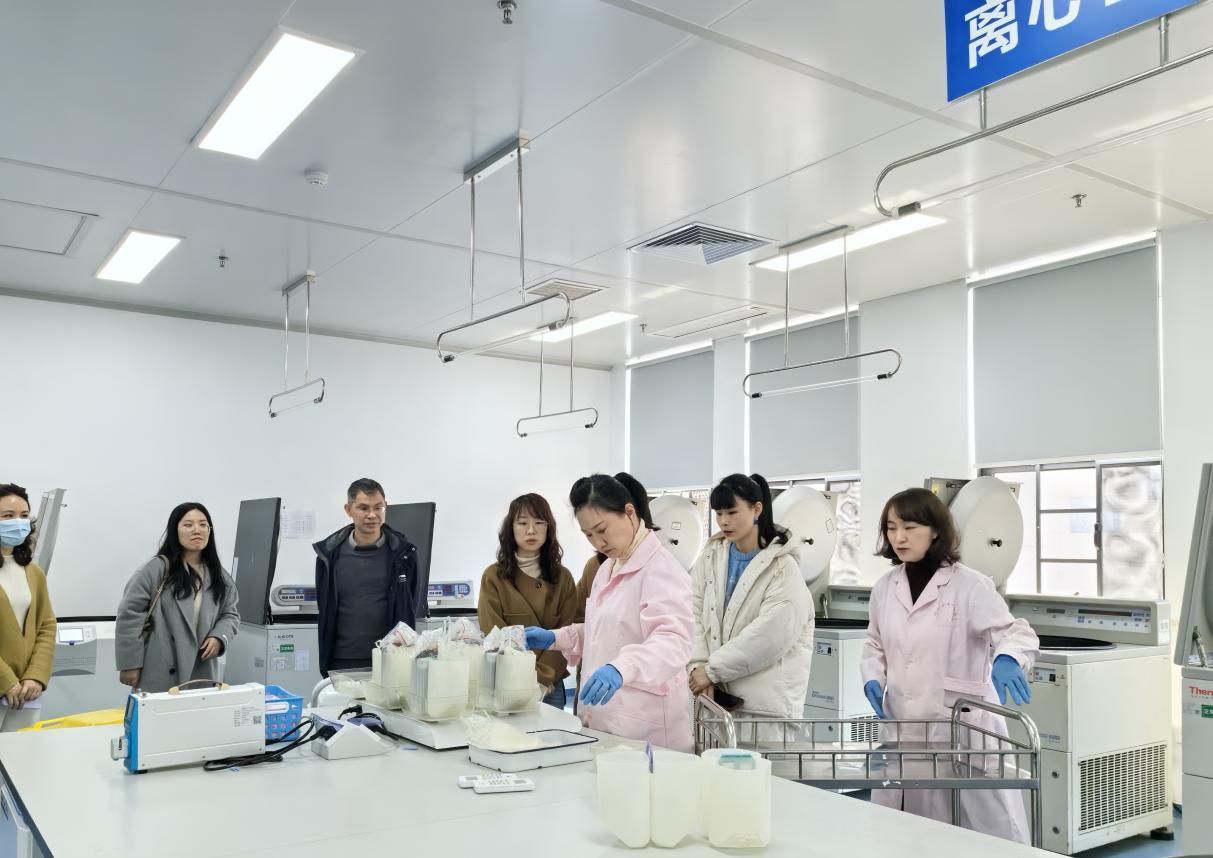 在郴州市中心血站副站长谭明科等工作人员带领下,教师们实地参观了发血科、机采科、成分科及检验科等核心科室,全面了解采供血全流程运作。在成分科,技术人员现场演示了血液分离技术等关键工艺;检验科工作人员通过自动化设备操作和标准化流程讲解,向教师团队展示了传染病标志物检测的前沿技术应用。