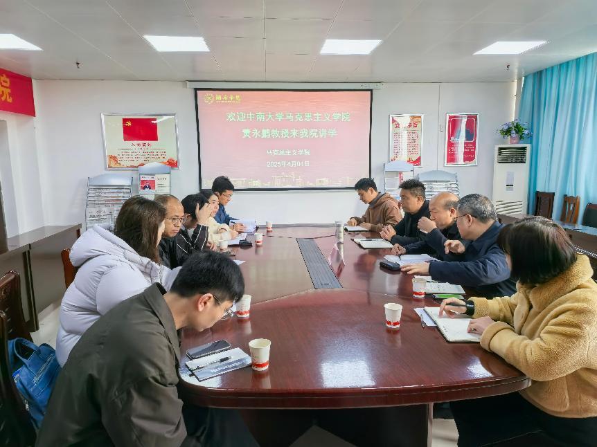 本网讯(通讯员 李月 摄影 刘媛)为提升科研能力与项目管理水平,助力青年教师职业发展,我校马克思主义学院邀请中南大学马克思主义学院教授黄永鹏来校作题为《国家级项目申报与青年教师成长》的专题讲座。我校马克思主义学院院长卿定文主持讲座,学院领导班子成员,科研骨干及青年教师参加讲座。