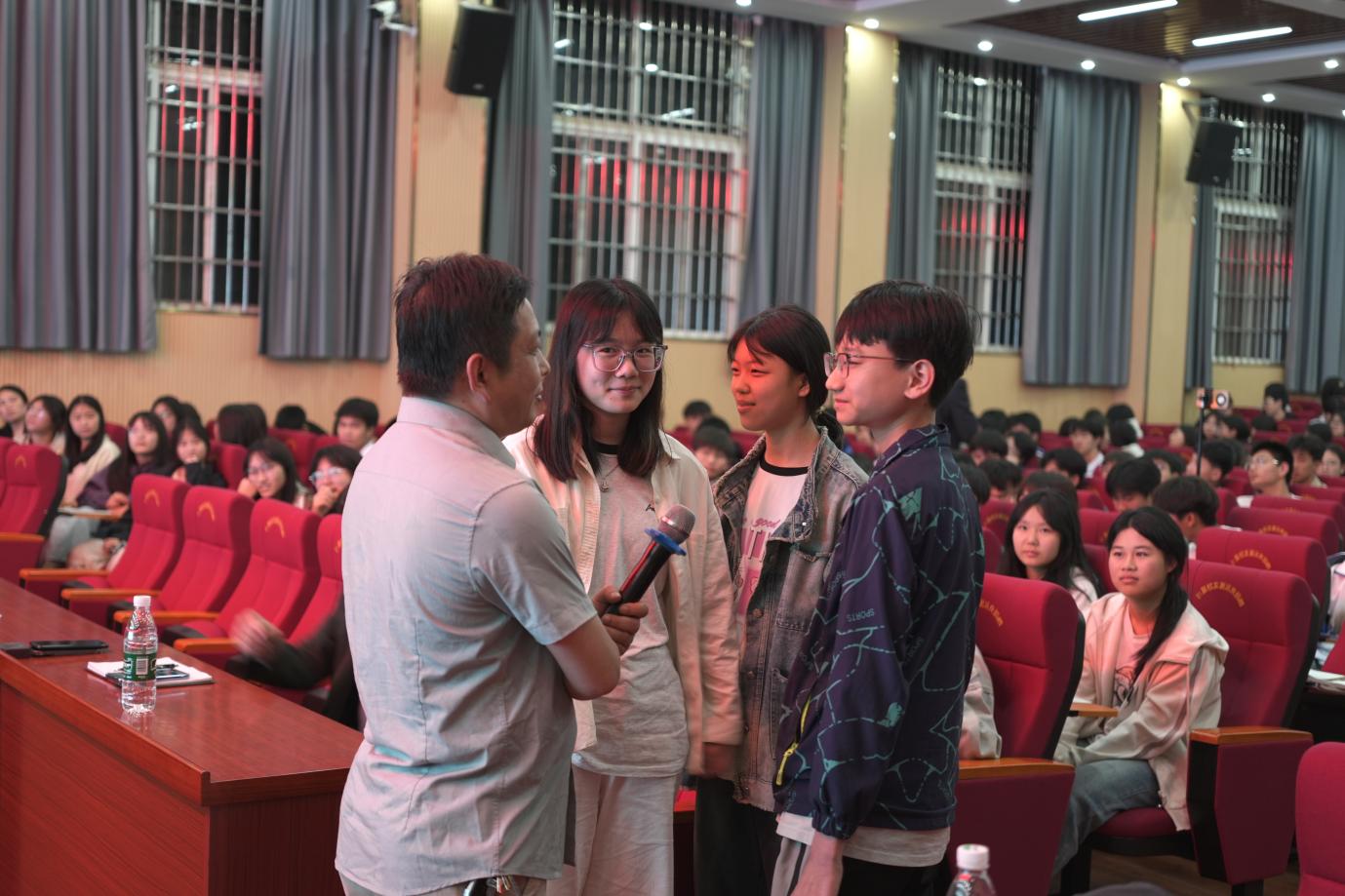 在学生场讲座上,何军飞以《焦虑与压力缓解:中学生的心理成长指南》为主题,针对中学生学业压力、情绪管理等痛点,结合临床经验,深入浅出地解析了青少年焦虑的成因、表现及危害。他通过生动案例与互动游戏,引导学生识别“过度焦虑”信号,传授“呼吸放松法”“目标拆解法”等实用减压技巧,强调“适度压力是成长动力”的理念,帮助学生建立积极心态。讲座中,何军飞与学生互动频繁,现场气氛热烈,学生们纷纷表示,学会了和压力做朋友。