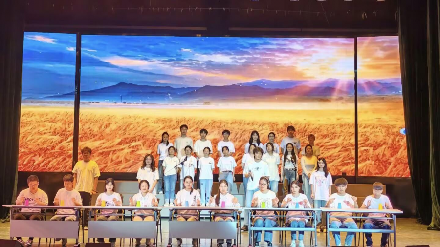 舞蹈《舞动青春》以活力舞姿拉开晚会帷幕,点燃现场气氛;小品《就诊》用风趣手法呈现就医场景,引起阵阵欢笑。中场抽奖环节将现场氛围推向高潮。下半场歌曲《找自己》唱出青春寻自我、守本真的心声;朗诵《满江红》带领师生们回溯金戈铁马年代,感受诗人忠勇豪情;晚会在大合唱《稻香》的歌声中落幕。晚会结束后,各位领导、老师与工作人员及表演人员合影留念。