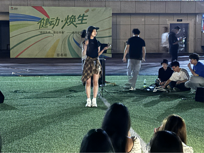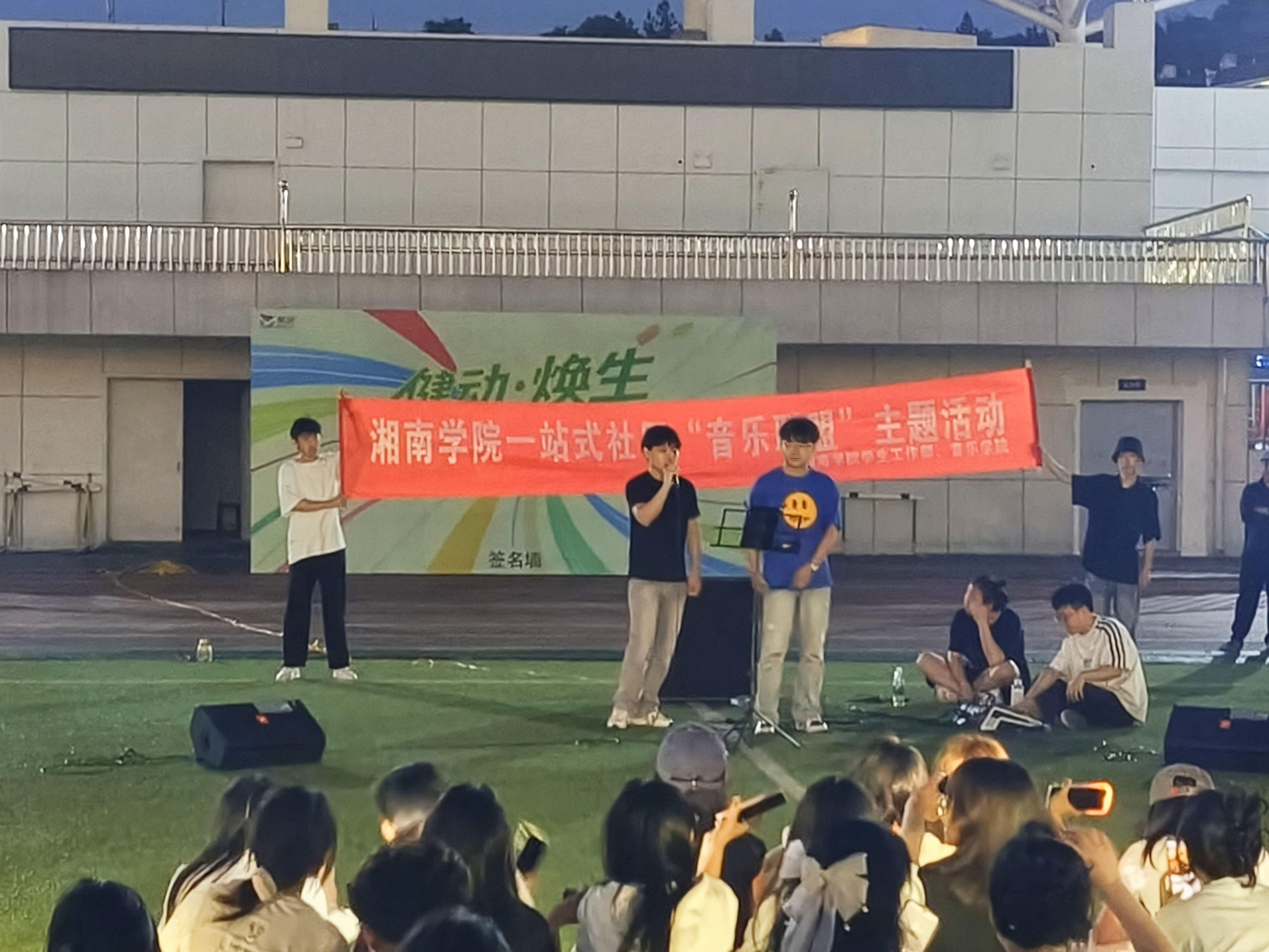 本次草坪音乐节打造超燃舞台现场,活力流行金曲、婉转民谣小调、激情摇滚乐章等多元风格音乐在绿茵草地轮番上演。不同风格的音乐交织碰撞,展现出湘南学子无限的创造力与才华。