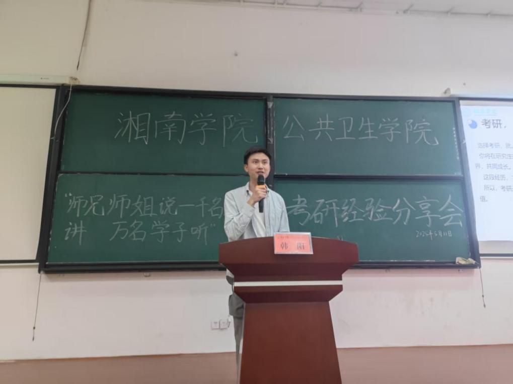 本网讯(通讯员 何铬颖 谭琳瑜 付子棋)5月11日晚,公共卫生学院“师兄师姐说——千名校友讲 万名学子听”考研经验分享会在明德楼106教室举行,旨在更好发挥榜样引领、朋辈辅导育人力量。韩阳、舒仔怡、杨喜亮、曹美君、朱悦涵等5位“上岸”校友分享经验,院党委副书记黄方琳出席本次活动。