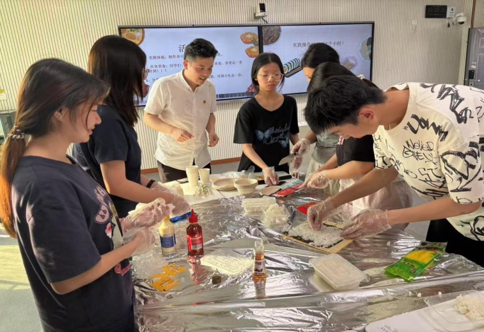 5月14日下午开展的“食愈心灵工坊”活动受到同学们踊跃参与和广泛欢迎。大家分组制作寿司、沙拉、肉松小贝等食物,气氛轻松而温馨。国家二级心理咨询师、公共卫生学院营养学专任教师成孟丽到场指导,她表示,食物制作可以传递心理关怀,触觉刺激能激活副交感神经,是一种表达性艺术的疗愈方法。