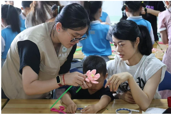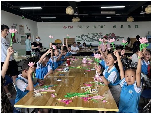 扭扭棒荷花的制作环节更是将活动推向高潮。志愿者讲解了制作技巧后,孩子们用五颜六色的扭扭棒创造出形态各异的荷花。“出淤泥而不染的荷花精神值得我们学习。”10岁的王同学一边组装花瓣一边说。
