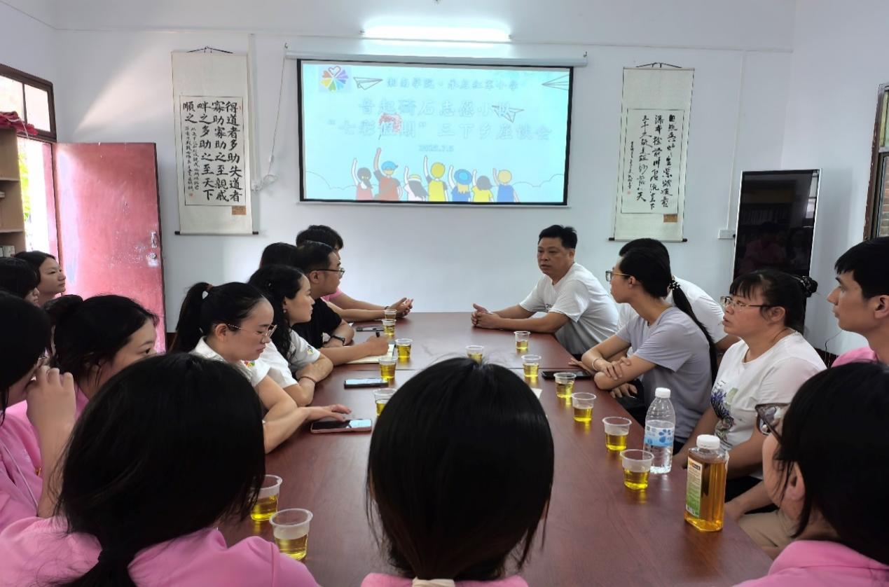 抵达目的地后,承启红军小学校方代表与湘南学院团队指导老师进行座谈。双方就实践活动的课程设置、实践小队食宿安排及相关注意事项展开深入交流,为后续志愿服务工作的顺利开展筑牢根基。