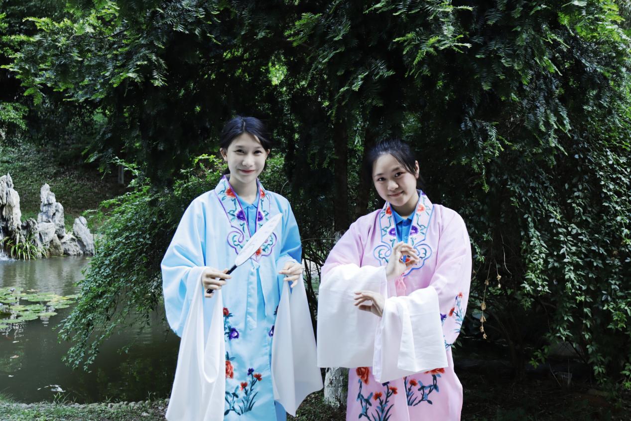 随后,实践团队赴苏仙岭实地追寻《踏莎行·郴州旅舍》故事源迹,在山水画卷中唱响湘昆余韵。团队成员在三绝碑、郴州旅舍和白鹿洞等地取景,为湘昆文旅创意视频拍摄素材,在“湘昆+山水”的沉浸式体验中,感悟湘昆“戏景交融”的独特魅力。队员刘蕊说:“以前在课堂上学习,总觉得感触不深,直到走在苏仙岭的石阶上,才真正感受到每一步都踏在故事里。”