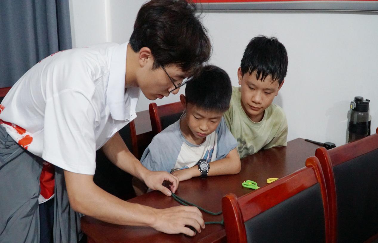 针对当地留守儿童暑期学习需求,实践团队精心设计分班支教方案,通过“爱国学习教育”“活力体育课堂”“创意手工美术”“安全知识小课堂”等特色课程,激发学生的学习兴趣和创造力。除了传授知识,实践团队还为当地留守儿童送去陪伴与关怀。他们利用课余时间与孩子们深入交流,了解其生活和学习状况,助力学生全面发展。一名孩子兴奋地说道:“通过这两天和老师们的相处,我发现学习是件非常有意思的事。”