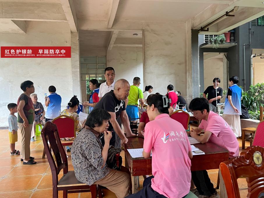 本网讯(通讯员 黄思洁)近日,公共卫生学院“红色医心 银龄守护队”暑期“三下乡”社会实践团队深入郴州市北湖区涌泉社区和苏仙区华湘社区(711矿区),协助当地卫生服务中心,将国家级公共卫生项目——“脑卒中高危人群筛查”的温暖服务精准送达居民身边。