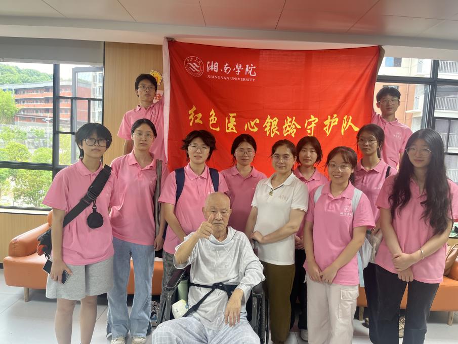 志愿者们带着对前辈奉献者的敬意和青春的热忱走进华湘医养中心,拜访在此奋斗了大半辈子的老同志。711矿退休工人罗名交老人紧握着同学们的手,激动地说:“当年我们为国家采铀矿,是顶要紧的事;今天你们守护人民健康,同样是顶要紧的事……”这一刻,红色精神在两代人中传递。
