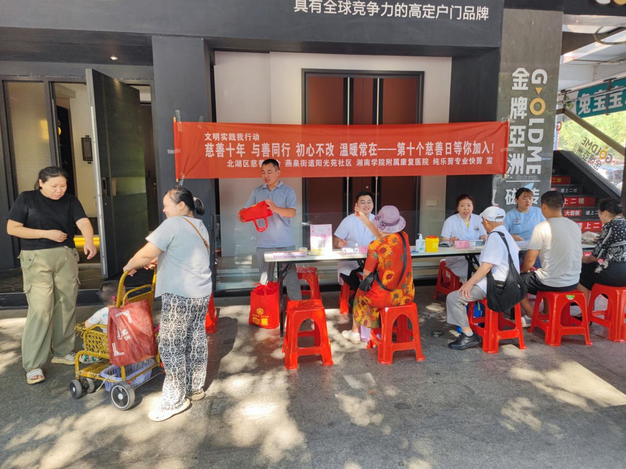 本网讯(通讯员 刘翔宇)在第10个慈善日来临之际,附属康复医院携手北湖区慈善总会、燕泉街道阳光苑社区等单位,共同举办了以“慈善关爱健康,文明实践同行”为主题的义诊服务活动,旨在弘扬慈善精神,践行社会主义核心价值观,切实将健康服务送至基层群众身边。