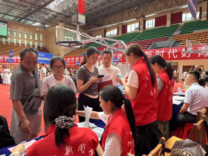 迎新现场,志愿者分工明确、热情周到,高效协助新生办理报道注册、体检表领取、校园卡开通等入学手续。学院领导与教师团队也来到现场,与新生及家长亲切交流,耐心解答疑问;新媒体产教融合实训中心的教师主动上前,详细介绍实践平台资源,鼓励新生加入实训团队,通过实操提升专业技能,为未来职业发展筑牢基础。