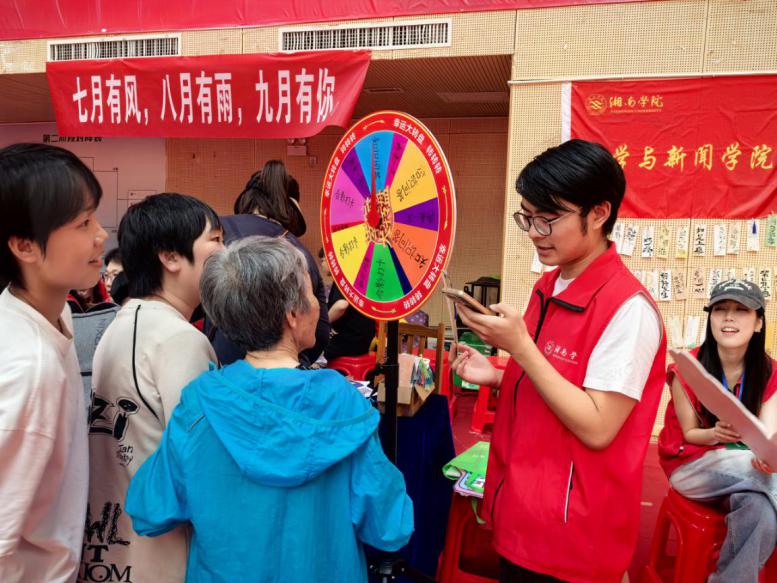学院特别设置“文化书签打卡墙”与“趣味转盘答题”环节。新生答对涵盖文学常识、科普知识、安全规范、校纪校规等内容的题目后,可获得学长学姐手写寄语的定制书签,并与文化墙合影,定格入学初体验。原本陌生的新生们迅速打破了隔阂,现场欢声笑语此起彼伏。