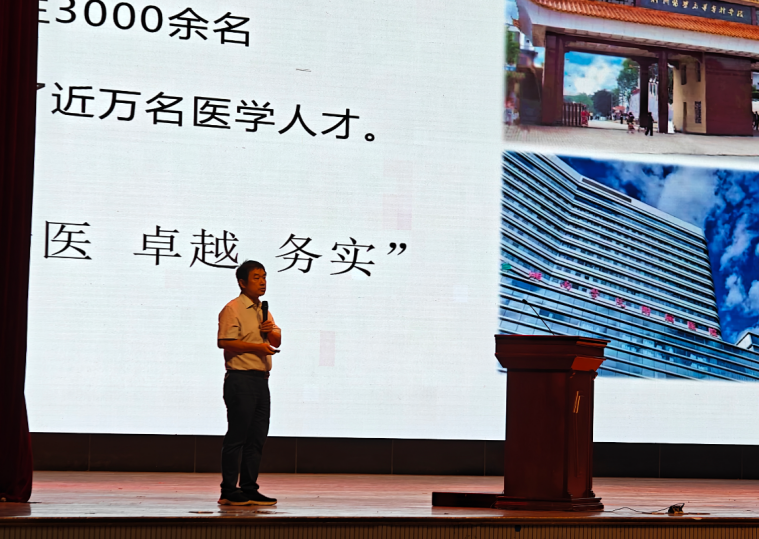 何勇详细解读了临床医学专业的培养路径,并引用最新就业数据称,学院近三年毕业生就业率持续保持在95%以上,升学率稳居学校前列。他以“选择医学,就是选择终身学习;选择湘南,就是选择高起点成长”勉励新生,为学生的未来规划指明了方向。