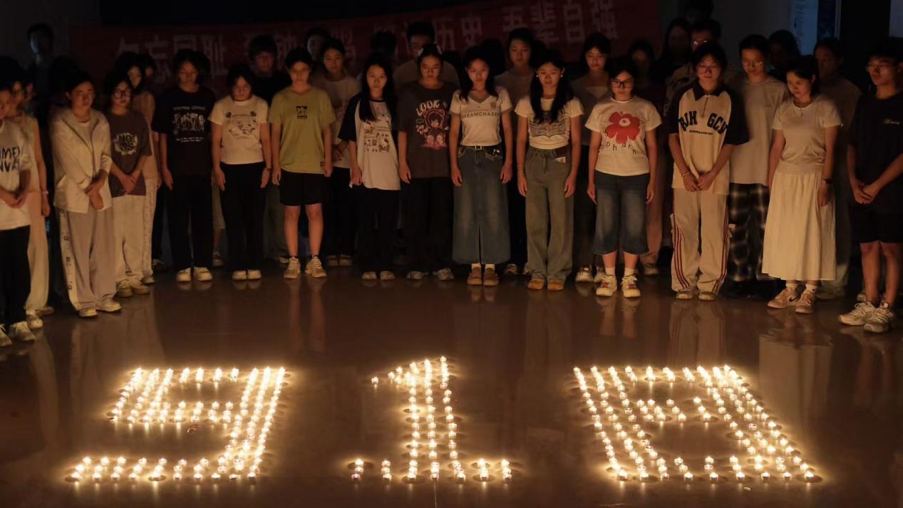 活动开始前,同学们依次领取蜡烛,将其有序摆放成“918”字样。点点烛光在现场渐次亮起,如同穿越时空的星火,映照出对历史的敬畏。随着烛光铺满“918”字样,全体人员围绕烛光肃立,为在九一八事变中遇难的同胞、为抗击日本军国主义侵略而英勇献身的先烈默哀三分钟。现场静穆无声,唯有烛光摇曳,诉说着对先烈的缅怀与对苦难的追思。