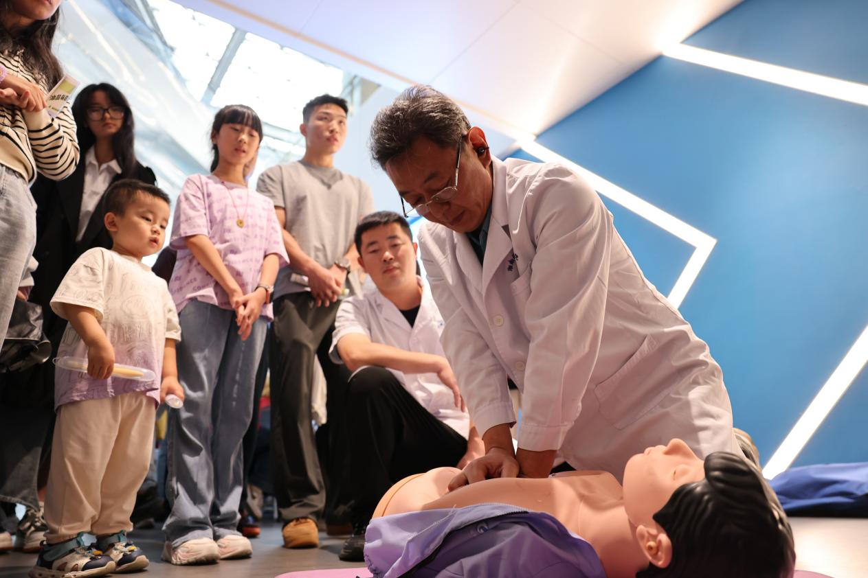 理论讲解结束后,袁斌云与护士长白明喜带领观众开展实操演练。“按压位置再靠下一点”“吹气时要捏住鼻子”,参与者们分组上手操作,两位专家一对一纠正动作细节。一位市民参与实操演练后表示,“以前总觉得急救离自己很远,今天亲手操作才知道有多重要,这些技能关键时刻能救命。”