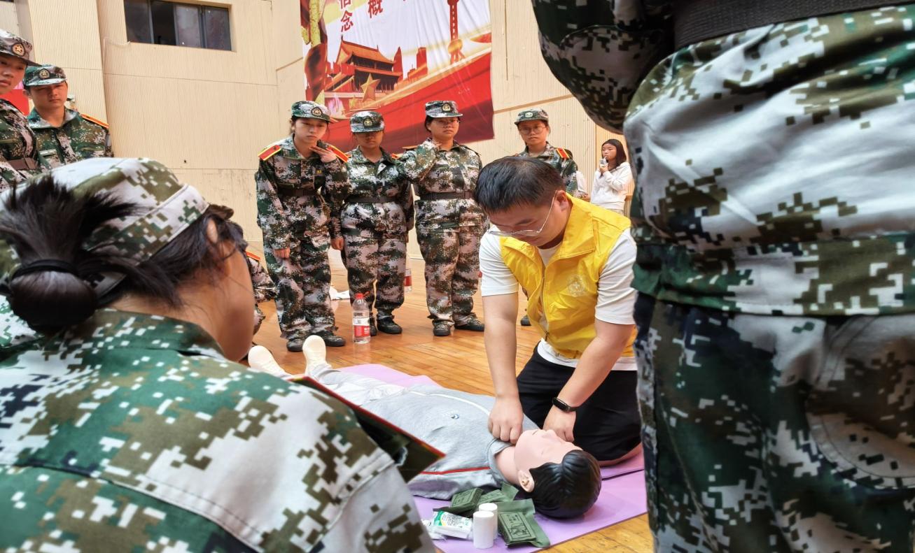 从队列训练到野外拉练,到内务整理到急救技能培训,基础医学院军训内容丰富、科学合理。红十字会开展的急救培训中,新生们认真学习心肺复苏、海姆立克法等关键技能;国防教育讲座深入浅出,增强学生国家安全意识;拉练途中,学子们步伐铿锵、相互扶持,展现出卓越的团队协作与坚韧品格。学院领导多次深入训练场巡查关怀,辅导员和班代全程护航,确保训练科学有序、安全高效。