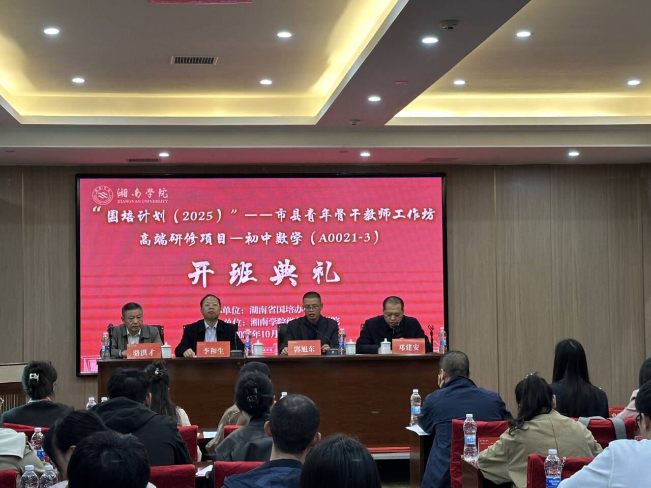 本网讯(通讯员 曾德强 李顺超 谭思朋)10月21日,来自湖南省40个县市区的40位青年骨干教师齐聚我校,参加“国培计划(2025)”湖南省市县青年骨干教师工作坊高端研修项目-初中数学(A0021-3)培训班”开班典礼。校党委委员、副校长李和生出席开班典礼。我校继续教育学院院长邓建安主持开班典礼。