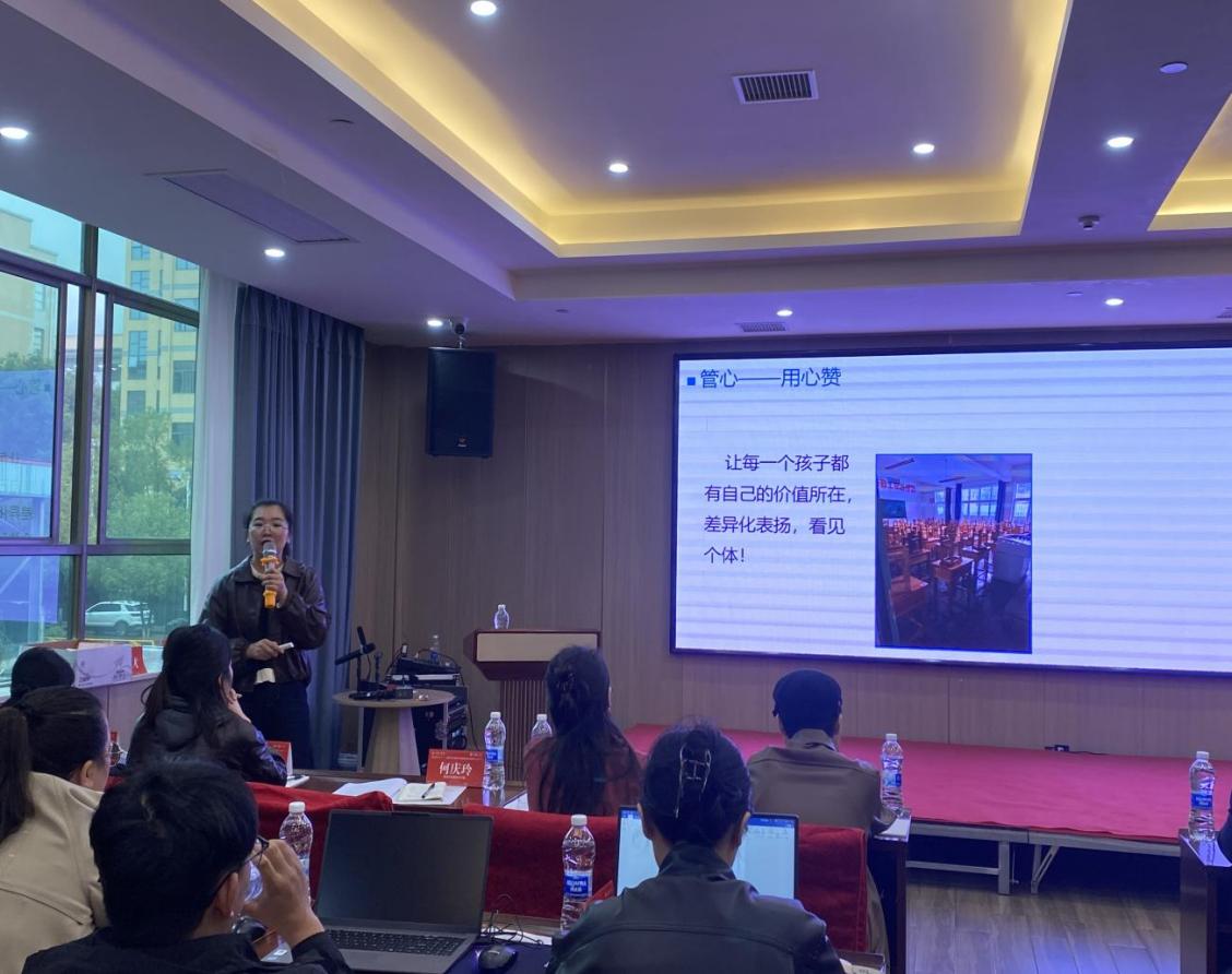 桂东县沤江中学教师郭吉倩以《情系学生,温度管理——初中班主任工作经验分享》为题作专题辅导报告。她结合自身经历,使用生动、鲜活的案例,深入浅出地阐述了如何将“立德树人”的根本任务融入日常班级管理。