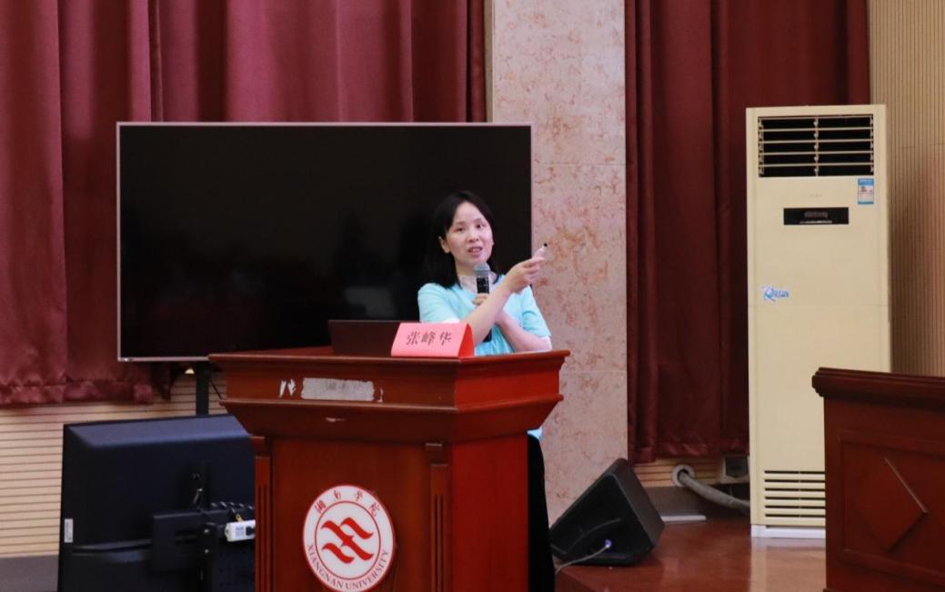 张文娟以《“流感大作战:一场身体里的大冒险”》为题作专题报告。她以专业视角和生动形象的“身体冒险”类比,为同学们分析流感病毒结构,拆解流感病毒的致病机制、症状表现及应对措施,并穿插有奖竞答,即时检验学生们的学习成效,内容兼具专业性与趣味性,让在场师生受益匪浅。