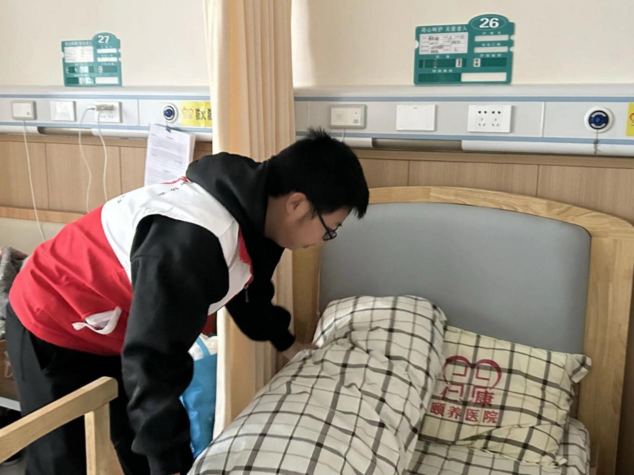 此外,志愿者还主动承担起力所能及的服务工作。有的帮老人整理床铺、叠放衣物,将褶皱的被单铺平;有的拿起扫帚、抹布,把老人房间的地面、窗台擦拭得一尘不染,让居住环境更加整洁有序。细致的关怀让老人倍感温暖,一位老人握着志愿者的手,欣慰地说:“孩子们太贴心了,又唱歌又干活,就像自家晚辈一样亲!”