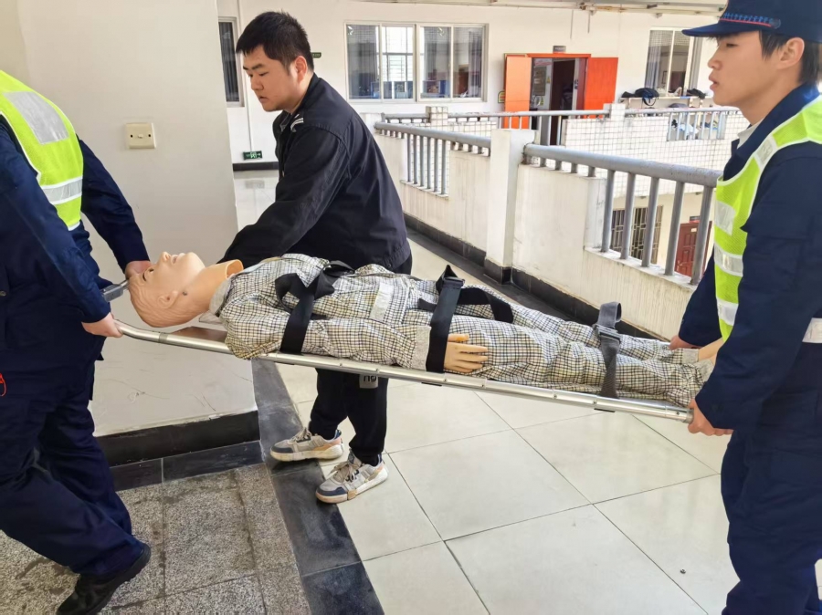 为确保演练活动安全有序开展,保卫部制定了详细的应急预案,成立预警小组、疏散小组、救援小组及后勤保障小组,有针对性地开展了事前培训宣传活动,在教学楼张贴逃生路线图和指示标志,对场地进行勘察布置,准备了急救药品、担架等物资。