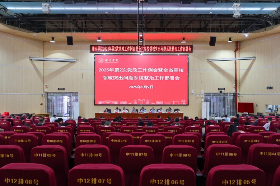 本网讯(通讯员 李冰婧 摄影 佘伟灏)5月9日上午,学校在思政报告厅召开2025年第2次党政工作例会暨全省高校领域突出问题系统整治工作部署会,校党委书记邹宏如讲话,党委副书记、校长雷小勇进行工作部署,党委副书记刘卫平主持会议,全体校领导出席会议。