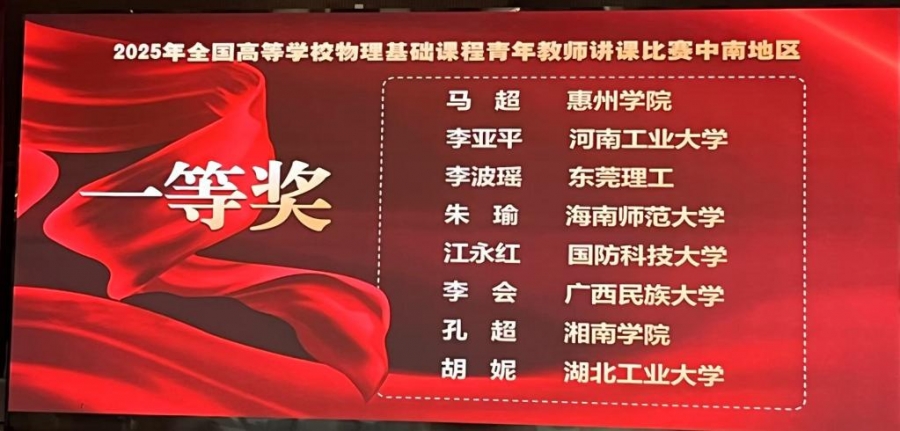 我校教师荣获2025年全国高等学校物理基础课程青年教师讲课比赛中南地区一等奖