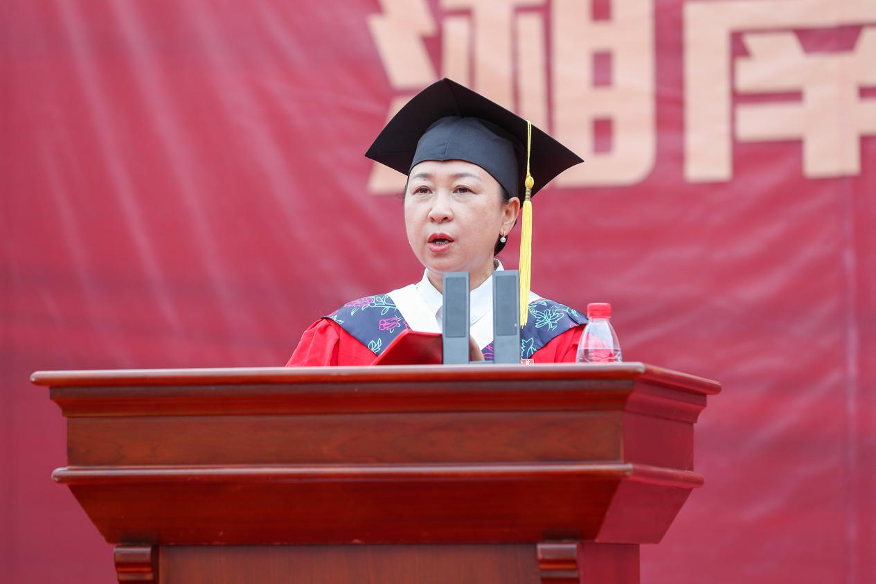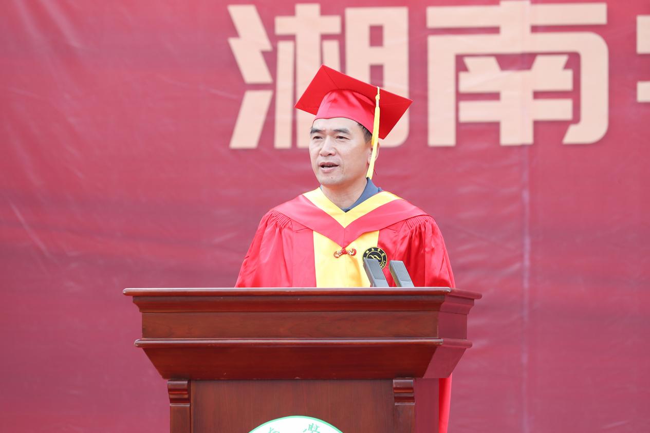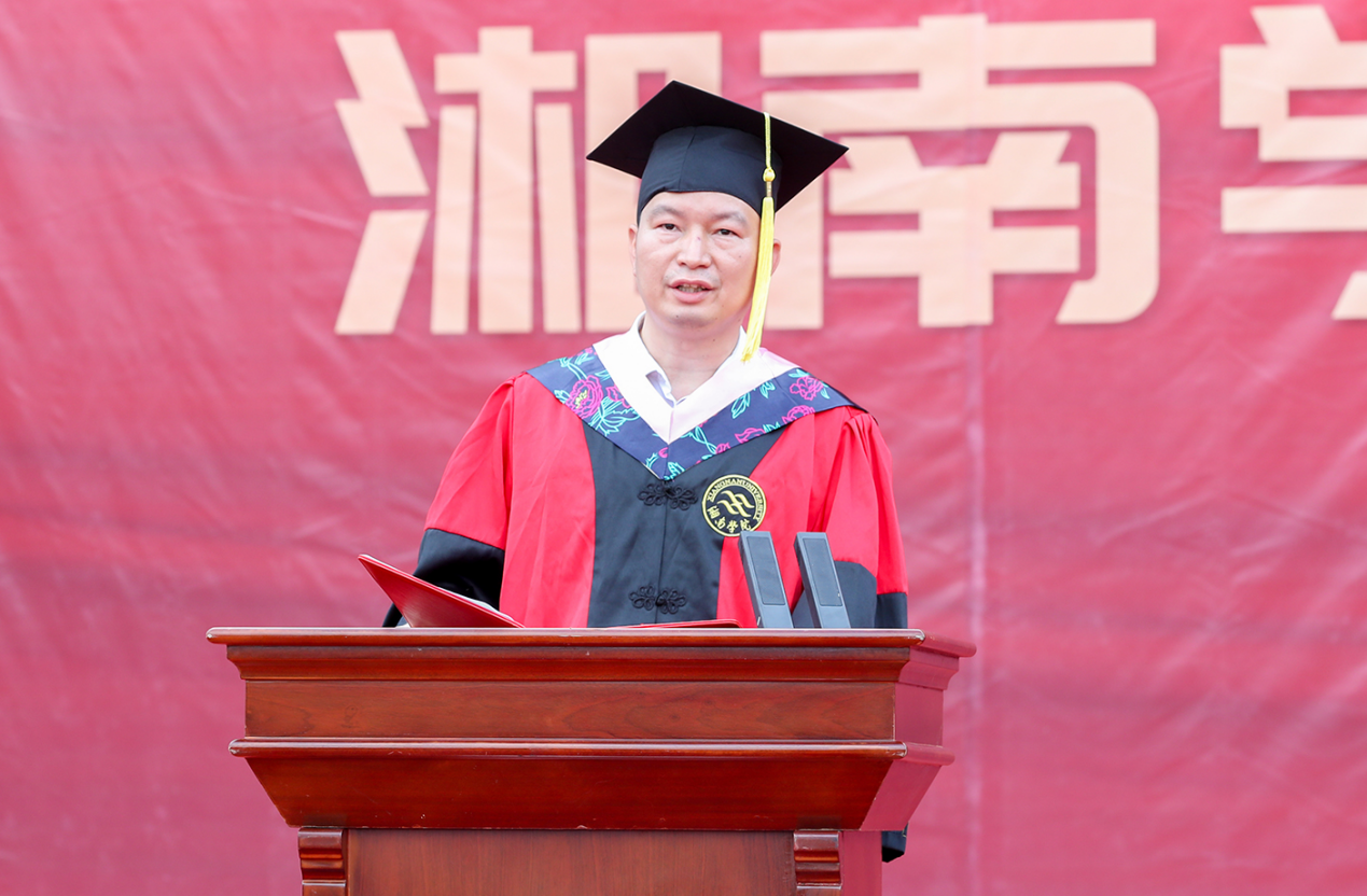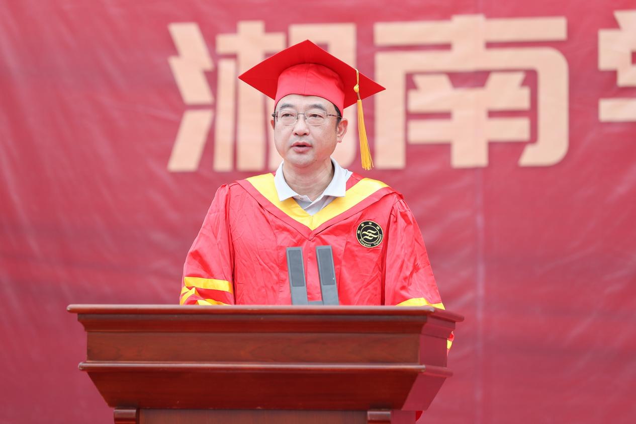 “又是一年骊歌响,又到一年离别季……母校将化作你们心底浓重的乡愁,而你们,也会成为母校永远的牵挂!”作为毕业生的师长与“大朋友”,邹宏如为2025届毕业生送上三点嘱托:一是要爱党爱国爱人民。立自力更生的志气、硬自强不息的骨气、长独立自主的底气,挺起中国人、湘南学院人的胸膛和脊梁,在中国式现代化的康庄大道上,绽放最耀眼的青春光芒。二是要迎风迎雨迎挑战。在即将开启的人生新路中,勇往直前,战胜挑战,于高山之巅,见大河奔涌;于群峰之上,赏长风浩荡。三是要向上向善向未来。永远保持向上而生、向善而行、向未来进发的昂扬姿态,把握时间、珍惜当下,用脚步丈量壮阔征程,用行动书写时代担当。