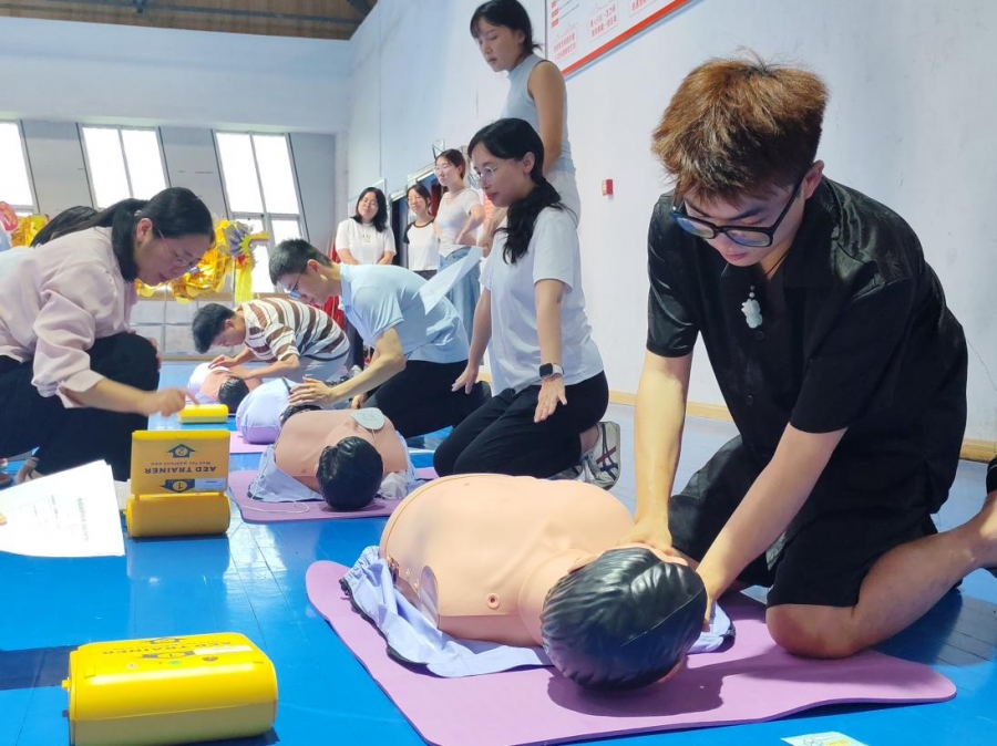 来自我校医学部、公共卫生学院、护理学院的5位专业救护师组成的教学团队,采用“理论精讲+案例剖析+实操拆解”递进式开展教学。教学团队结合校园常见突发状况,深度解析心肺复苏操作、AED设备使用、海姆立克急救法等实用技能。在实训现场,学员分组开展心肺复苏操作、创伤包扎、气道异物梗阻急救等实战演练,借助智能评分系统即时纠正操作偏差。