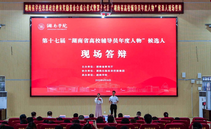 本网讯(通讯员 贺炜鹏 刘华 周彩艳 摄影 佘伟灏) 6 月 26 日,第十七届 “湖南省高校辅导员年度人物”候选人现场答辩活动在我校举行。
