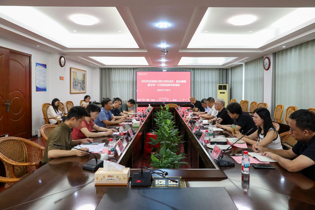 本网讯(通讯员 孙丽 摄影 佘伟灏)7月8日上午,湖南日报社党组成员、副总编辑蒙志军一行7人来我校调研。校党委副书记刘卫平出席相关活动。