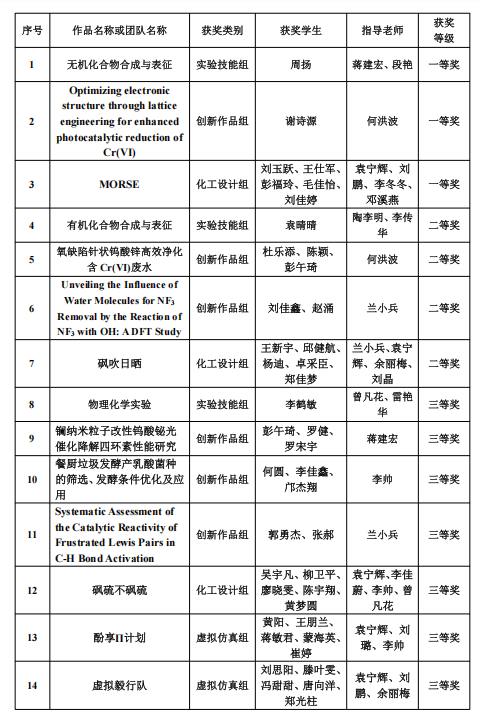 经过紧张而激烈的角逐,化学与环境科学学院参赛团队凭借扎实的专业知识、卓越的实践能力和不懈的拼搏精神,在本次竞赛中取得了优异成绩,共斩获一等奖3项、二等奖4项、三等奖7项,获奖学生数共计42人,创学院历史最佳成绩,展现了学院在人才培养方面的显著成效。