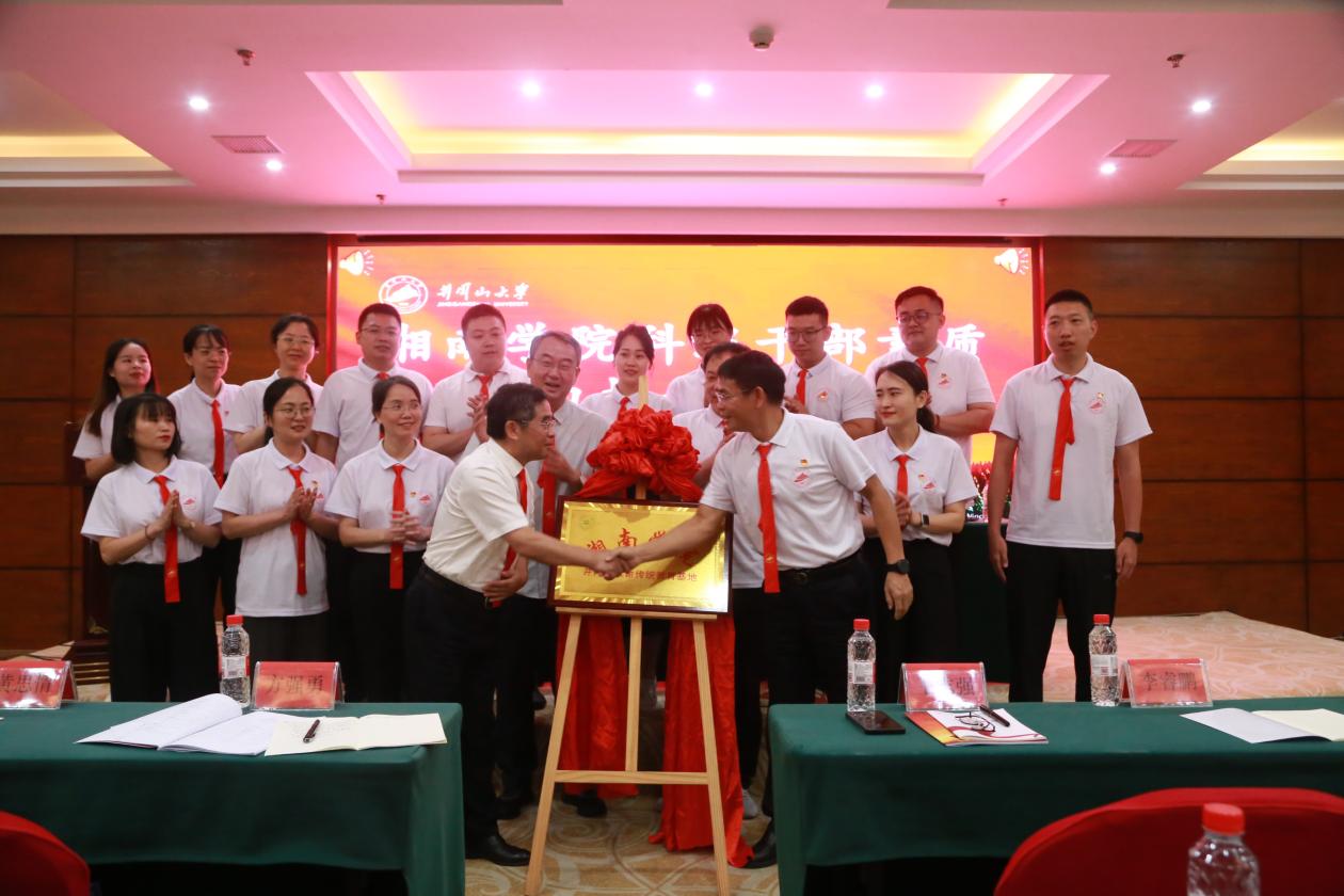 肖宜安与刘卫平共同为湘南学院井冈山革命传统教育基地揭牌。肖宜安为培训班授旗。