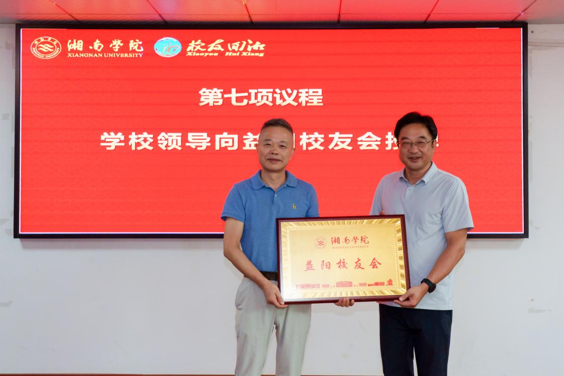 邹宏如为益阳校友会授牌,并为益阳校友会第一届会长及理事会成员颁发聘书。