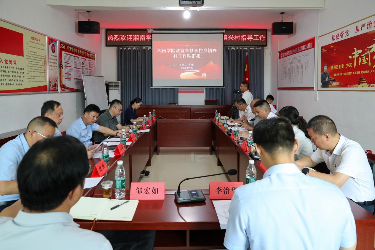 学校驻镇兴村工作队作工作汇报,村支部、乡党委、宜章县驻村办以及学校党委组织部相关负责同志围绕镇兴村振兴发展及驻村工作队如何有效开展帮扶工作作交流发言。