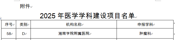 我校附属医院肿瘤科成功入选首届湖南省医学学科建设项目