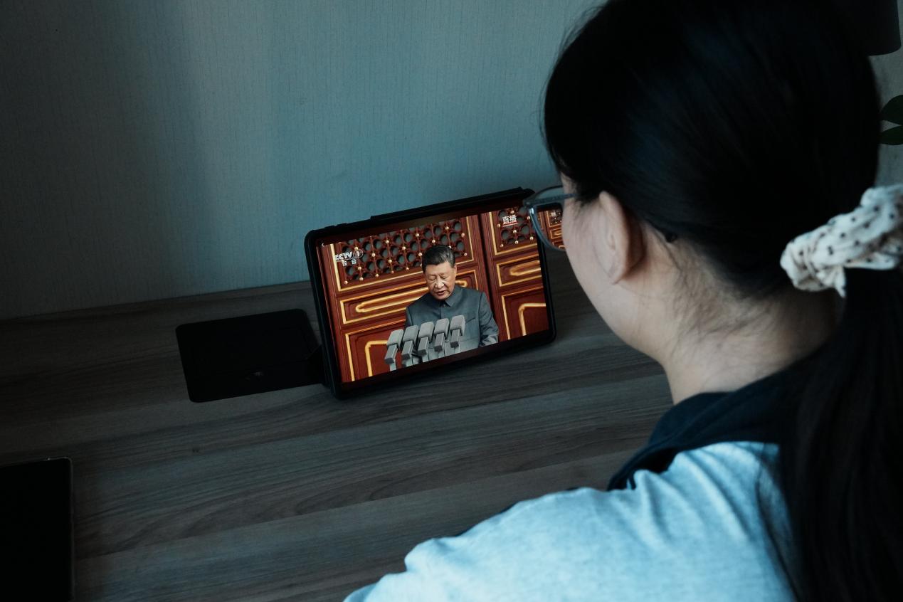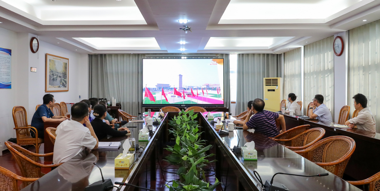 在家校领导、党政办和宣传统战部支部党员集中观看直播