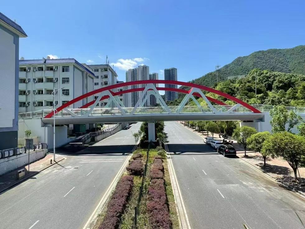 新建天桥设计现代、美观大方,桥长122.8米,桥宽8米,采用跨径为22m+22m的钢箱梁结构,在建设规模与结构设计上充分考虑师生通行需求,既保障了桥梁的稳固性,也为师生通行提供了充足空间。该人行天桥的投入使用,是湘南学院践行“以生为本”理念、持续优化育人环境、建设平安校园的又一重要举措。