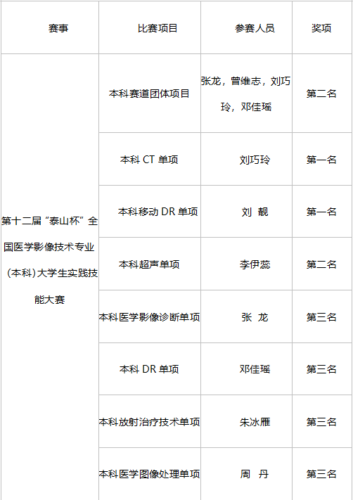 我校在第十二届“泰山杯”全国医学影像技术专业(本科)大学生实践技能大赛中获佳绩