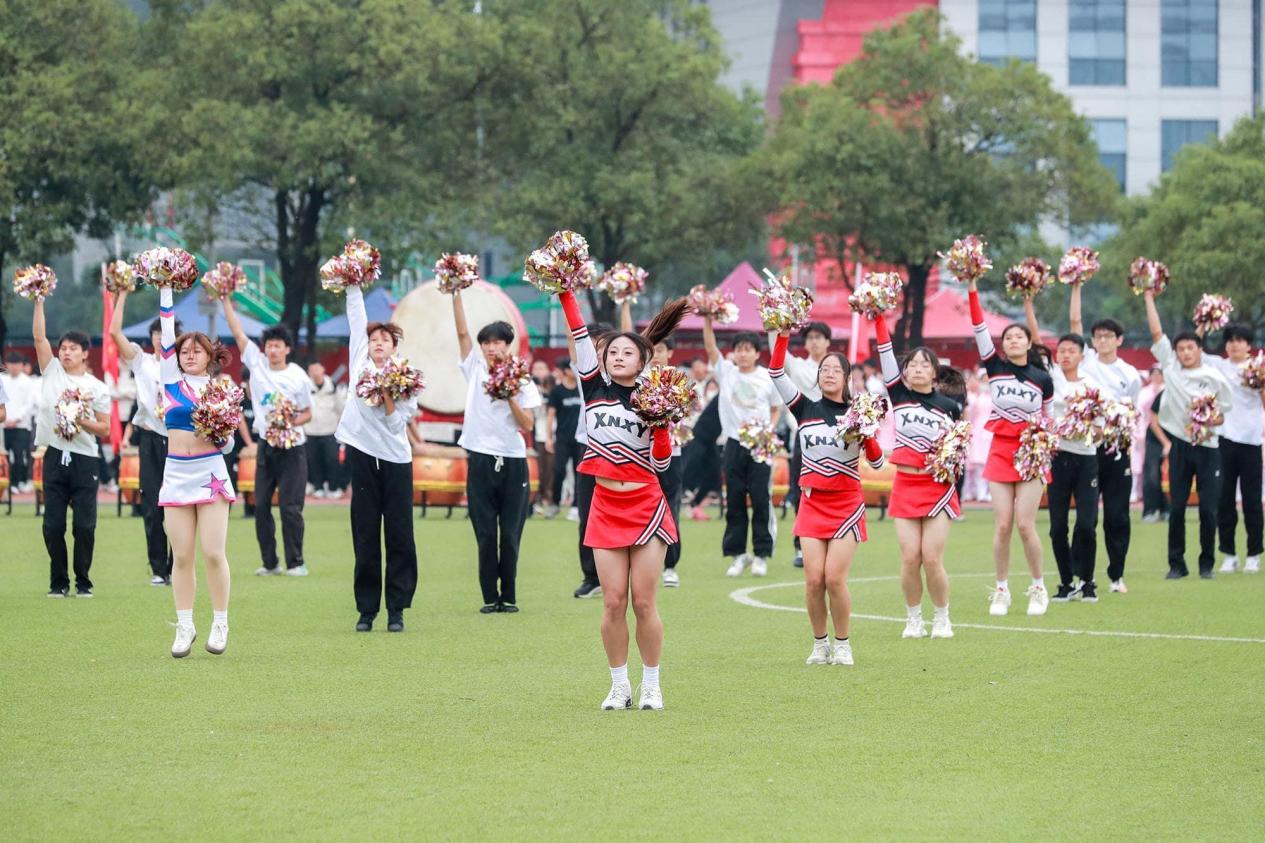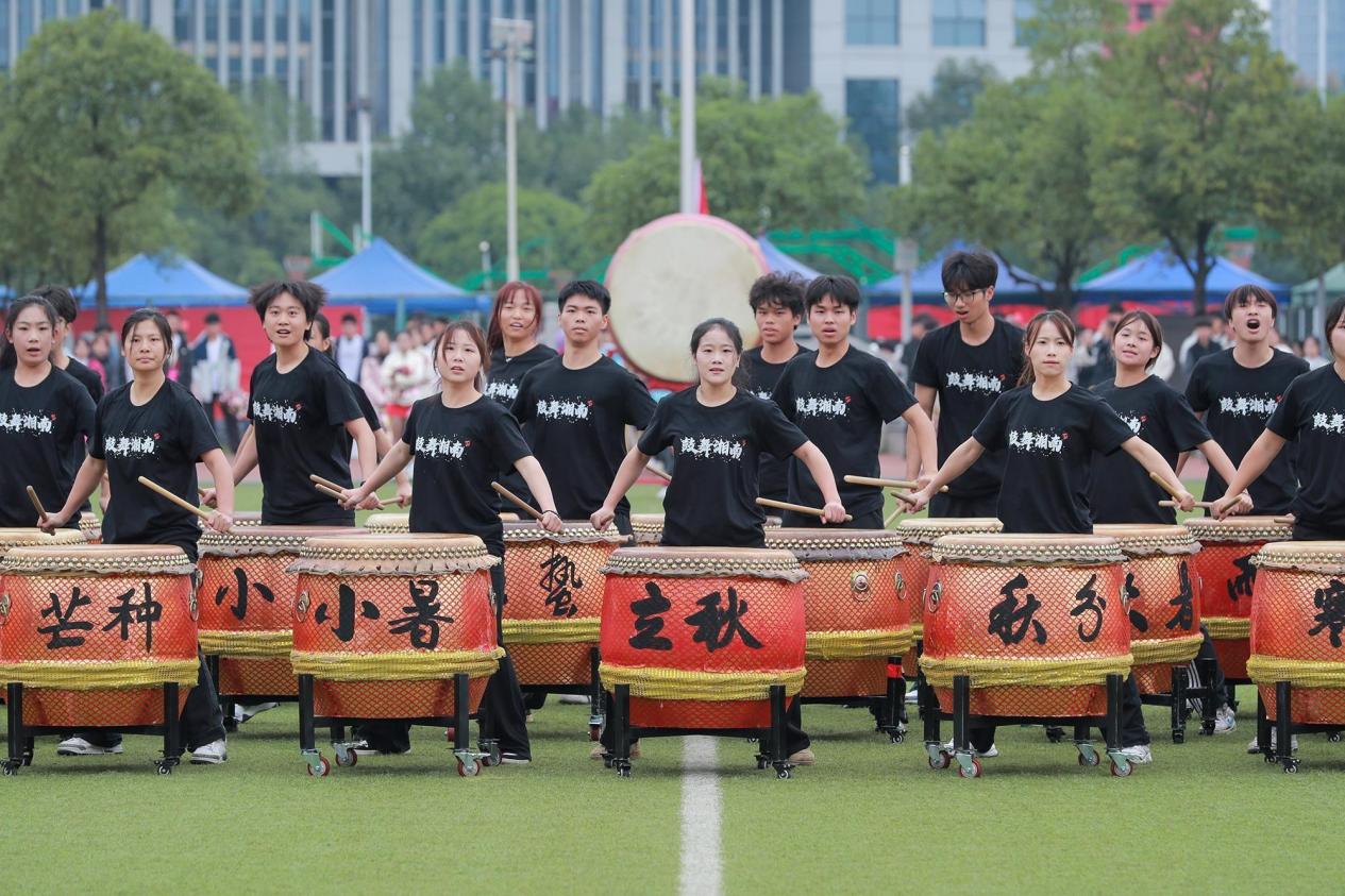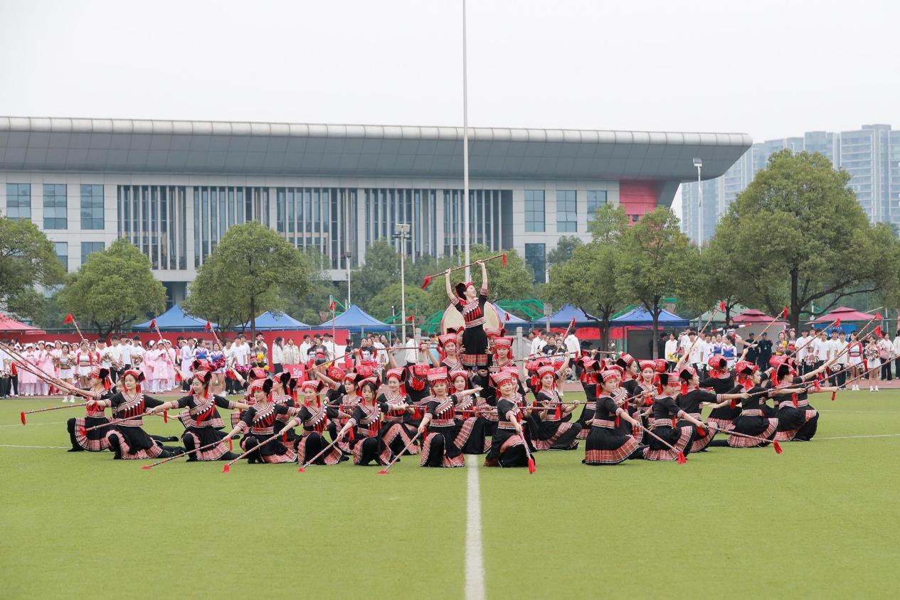 开幕式上,体育学院和音乐学院师生带来精彩的节目表演。节令鼓表演《鼓舞湘南》激情豪迈,将铿锵鼓点化作力与美的交响;舞龙表演《龙腾盛世》气势磅礴,展现湘南学子拼搏进取的精神面貌;舞蹈表演《花棍“瑶”起湘南韵》舞姿曼妙,节奏清脆,瑶乡文化的纯净与欢腾扑面而来;啦啦操表演《青春啦啦》活力动人,青春能量瞬间点燃全场。