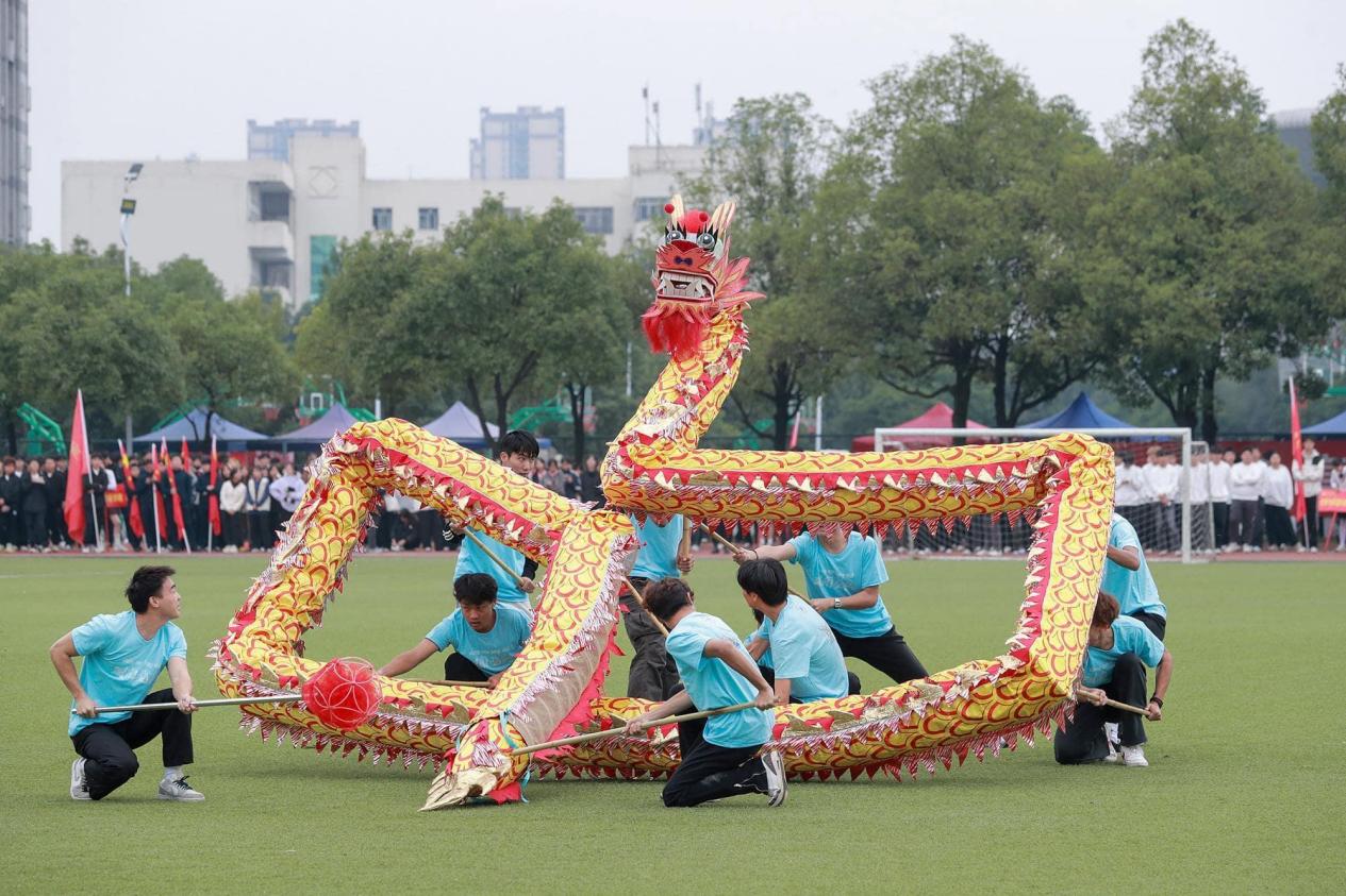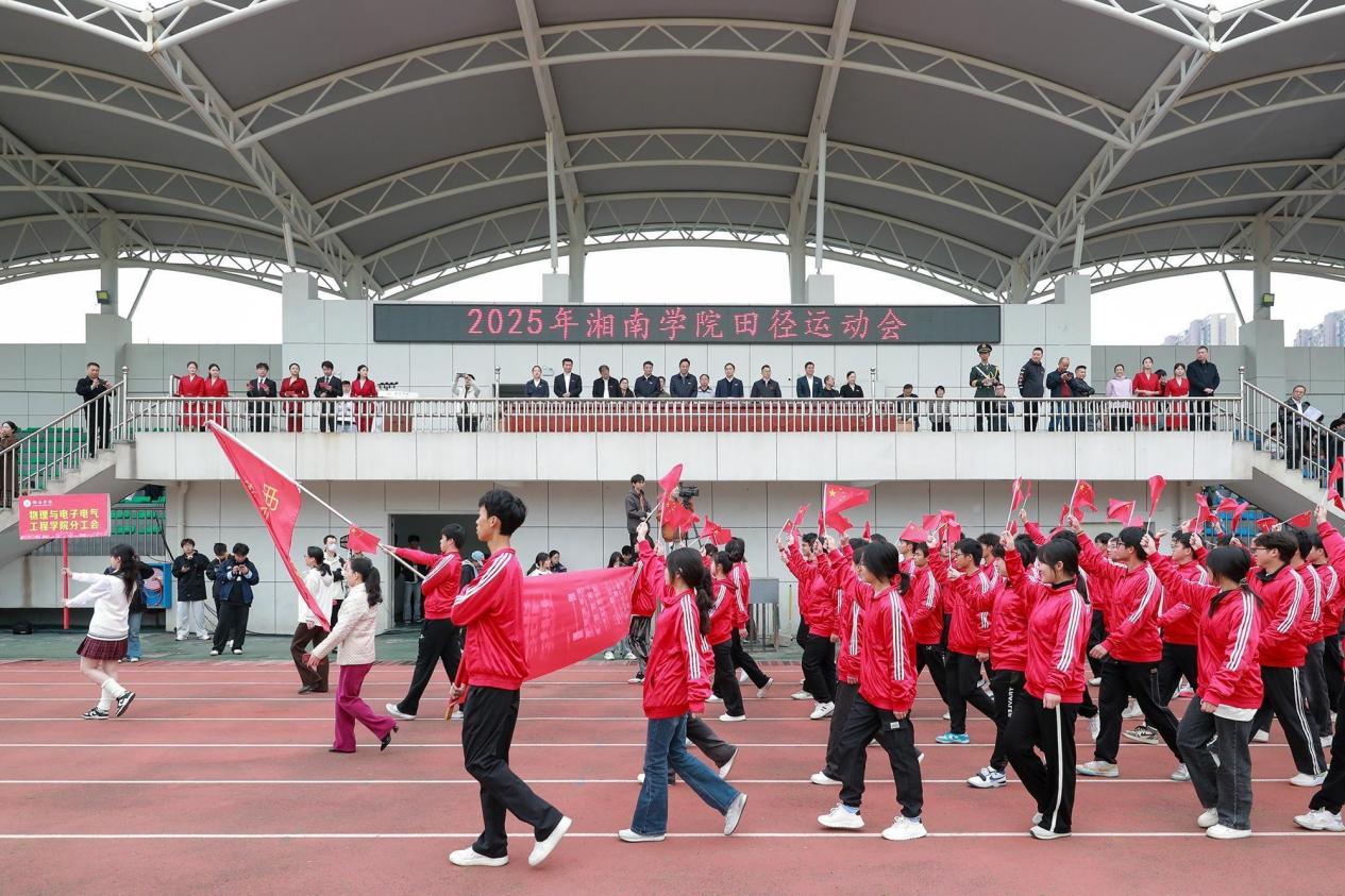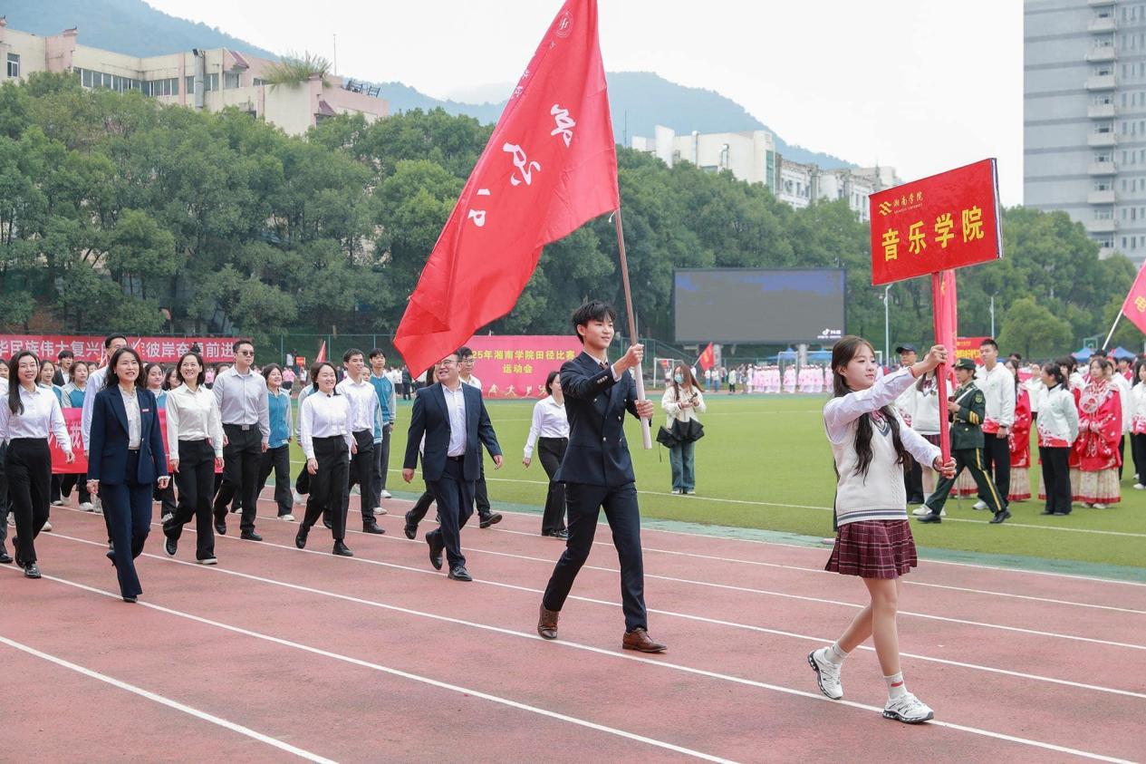 开幕式上,体育学院和音乐学院师生带来精彩的节目表演。节令鼓表演《鼓舞湘南》激情豪迈,将铿锵鼓点化作力与美的交响;舞龙表演《龙腾盛世》气势磅礴,展现湘南学子拼搏进取的精神面貌;舞蹈表演《花棍“瑶”起湘南韵》舞姿曼妙,节奏清脆,瑶乡文化的纯净与欢腾扑面而来;啦啦操表演《青春啦啦》活力动人,青春能量瞬间点燃全场。