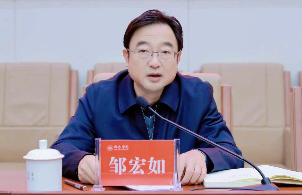 开班典礼上,邹宏如以《弘扬教育家精神 争做湘南大先生》为题讲话。他从三个方面为新进教师发展提升指明方向:一是深悟教育家精神的时代内涵,进一步认识教育家精神是师者风范的传承核心、马克思主义教育思想的实践载体、教师队伍建设的根本遵循;二是锚定“党和人民满意的好教师”目标,以“湘南大先生”“湘南大管家”为师德标杆;三是锤炼自身修养,努力成为有情怀、有抱负、有本领、有定力、有作为、有格局、有规矩的青年教师,以能力担当提升助推学校高质量发展。