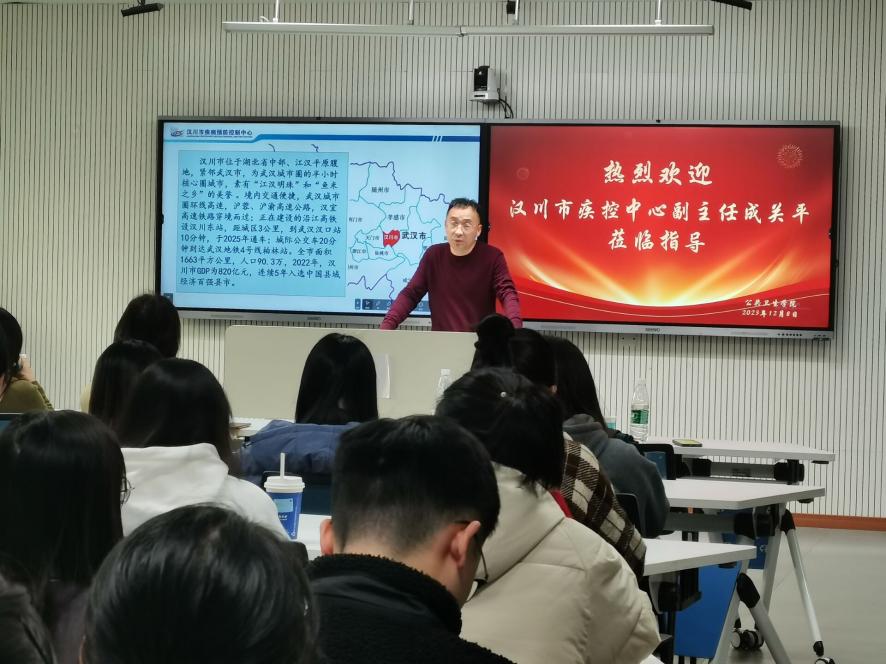 汉川市疾控中心副主任成关平在公共卫生学院开展讲座